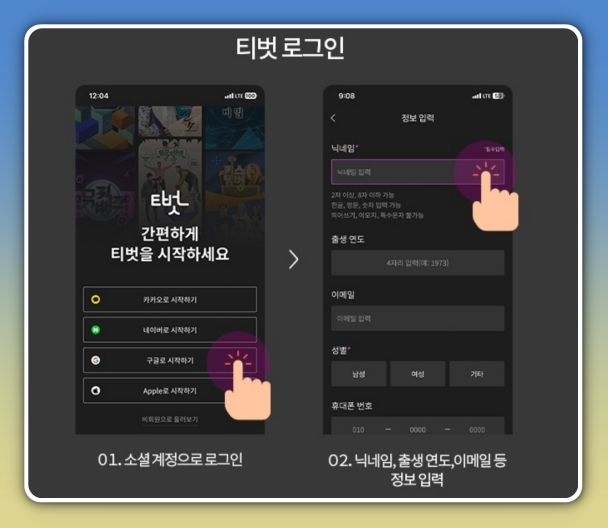 - 회원 가입: 앱을 설치한 후 카카오톡, 네이버, 구글 계정 등을 이용해 간편하게 회원 가입합니다. 회원 가입 시 닉네임, 출생연도, 이메일 주소, 그리고 특히 휴대폰 번호를 입력해야 합니다.