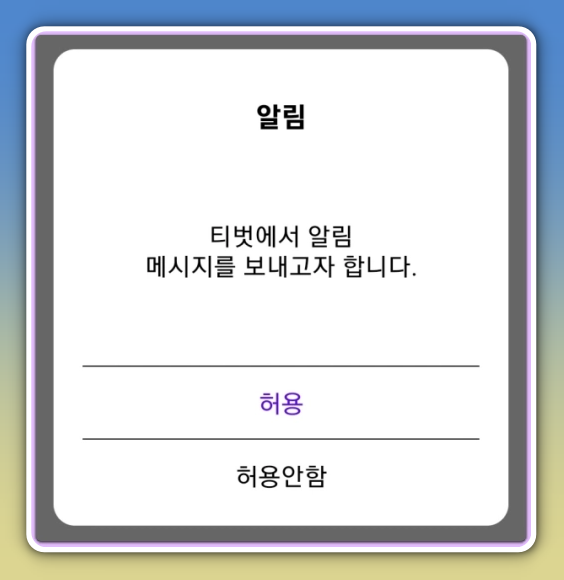 2. 알림 설정: 알림 메시지를 받을지 여부를 묻는 창이 나타납니다. 원하지 않으면 '허용 안 함'을 선택할 수 있습니다.