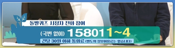 - 전화번호 입력: 방송 중 퀴즈 문제가 나오면, 국번 없이 15801 번호를 입력합니다.